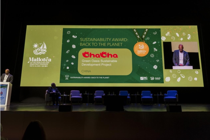 在本次大会上,洽洽食品凭借其卓越的可持续发展实践,荣获回归地球项目“INC2025可持续发展奖”,成为中国坚果行业首家获此殊荣的企业。该项目自2021年启动以来,聚焦全生命周期绿色制造,覆盖坚果种植、沙漠生态修复及可再生能源应用三大领域。