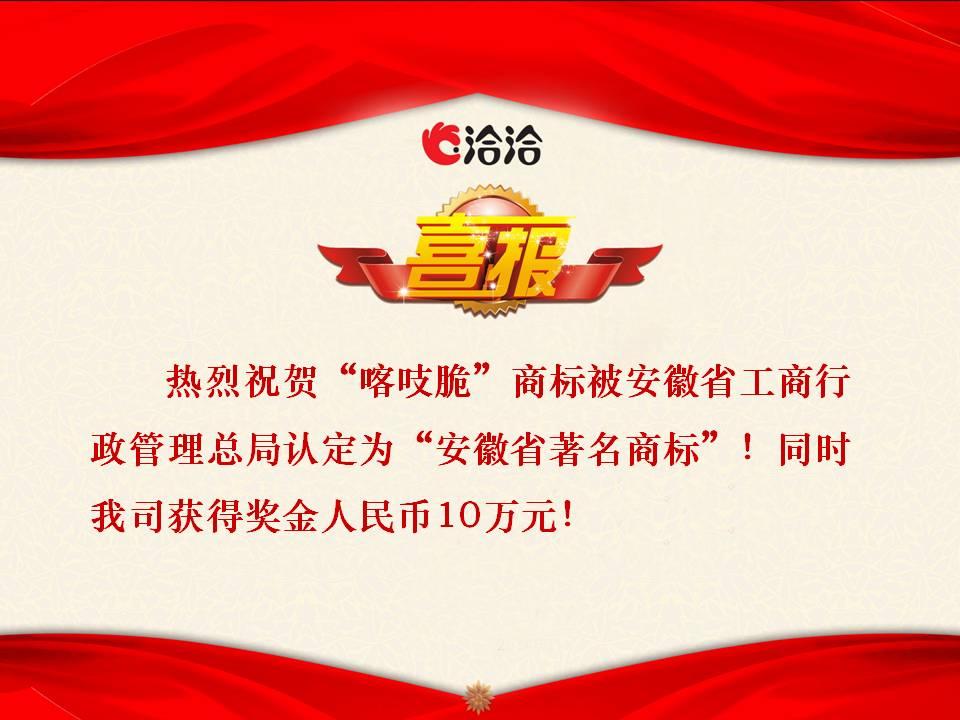 【喜报】喀吱脆商标被认定为安徽省著名商标