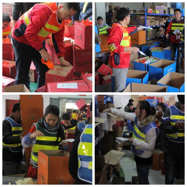 11月11日,在电商公司的各位同仁们的积极努力下,今天公司收到了大量的网购订单,为了保证电商顺利的发货,约40余名来自洽洽各部门的同仁们今天早早的赶到了电商的发货仓库,支援电商完成发货任务。