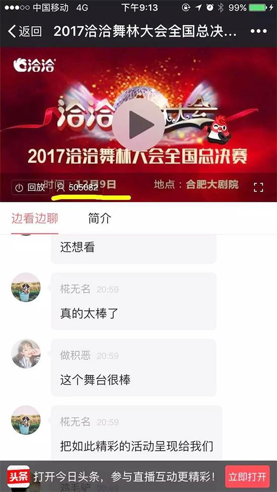 伴着轻快的节奏、优美的音乐,一支支队伍陆续登场,在舞台中央绚丽的灯光下翩翩起舞,各参赛队灵动的舞姿,整齐的动作,新颖的编排,华丽的服饰,朝气蓬勃的精神风貌引得台下观众目不转睛,博得在场观众的热烈掌声,台下不时响起热烈的掌声,有的观众还拿着手机不停地拍照、录像,争相留下这美丽的一瞬。今日头条线上直播更是突破50万人次!