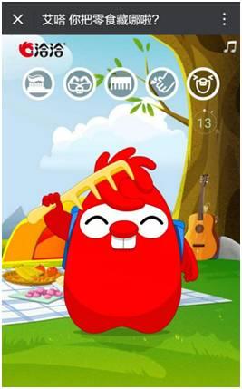 不满足于对艾嗒平面化的呈现,洽洽紧跟热度推出的两个H5颠覆性的把艾嗒扁平化的二维形象变成了3D卡通立体形象。在《艾嗒体感游戏》H5中,通过人机互动的方式,加入体感技术,玩家通过操纵手机向上向下移动来操纵风筝的走向,小鸟等障碍物增加了游戏的难度与趣味性,真实的体感互动感受令玩家爱不释手。在《艾嗒你把零食藏哪啦》的互动H5中,玩家可以通过触摸艾嗒身体的不同部分触发艾嗒不同的行为动作,一些刷牙、戴墨镜、梳头发的小动作很容易勾起女性粉丝关于养成游戏的记忆,更具情怀增加用户好感度。一经推出,便火速刷屏,占领了各大吃货的朋友圈。