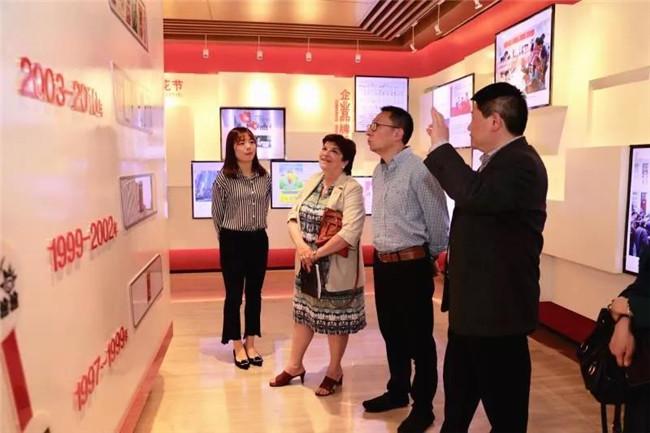 当天,在相关领导的热情接待下,Julie女士参观了洽洽文化长廊。步入长廊,首先映入眼帘的便是企业发展历程,图文并茂、大气恢弘的背景墙,犹如百里漓江画廊一样,以文字、照片等形式为载体,展现了洽洽多年来在专注坚果质造领域取得的建设成果。