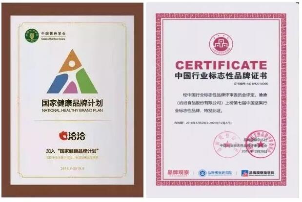 除此之外,洽洽坚果获得中国国家农业部认证的“中国国家坚果加工技术研发中心”;中国国家工信部认证的“中国2018智能质造试点示范”;中国坚果行业首个“标志性品牌”;“中国干坚果贮藏与加工保质关键技术及产业化”项目荣获国务院颁发的中国国家科学技术进步二等奖。