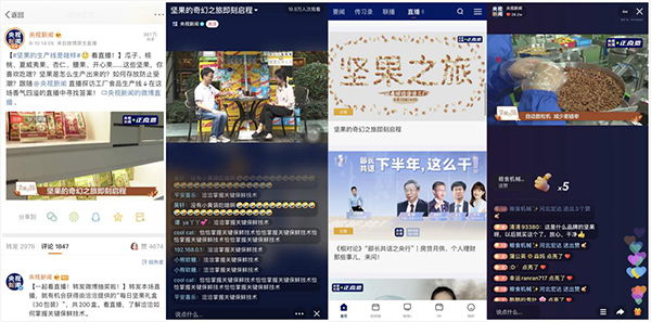 10日14点,央视新闻在微博、抖音、快手以及央视新闻客户端,4大新媒体平台上同步对洽洽透明工厂进行直播,2.6亿粉丝通过央视新闻的镜头深入洽洽内部,与企业领导、工厂厂长直接对话,更直观的感受洽洽的企业文化和先进技术,见证新鲜品质坚果的诞生。