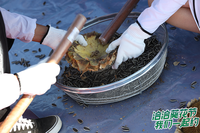 在现场,大多数消费者都是第一次亲眼见到葵盘,因此对打葵盘、亲手取出瓜子并进行炒制体验的活动兴致满满,围观和排队的人接连不断,越来越多;想要了解向日葵农耕文化,除了上手体验,葵花文化知识问答的环节也是大多数人汲取知识的主要去处。通过这一系列的了解和体验,大家不仅了解学习到了更多向日葵和瓜子的相关知识,更从中体会到了葵农的艰辛,也因此感受到了洽洽食品对待产品原料的认真态度。