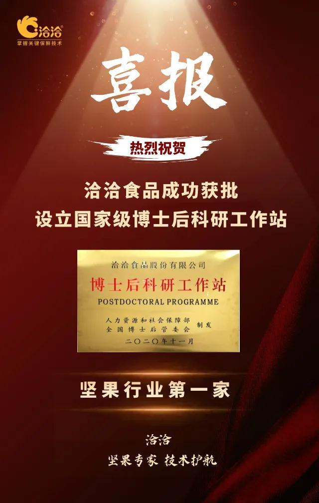 而在全国食品制造业领域博士后工作站中,洽洽是坚果行业第一家。此次成功获批,是对洽洽技术创新能力、人才培养能力的充分肯定,也是进一步推动洽洽与高校、科研院所开展产学研合作的良好契机,通过开展深度课题合作,联合培养高层次人才,为人才培养、技术创新、企业发展创造优越的条件。