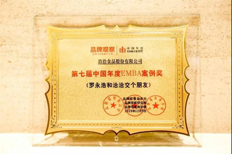 12月5日,品牌观察、品牌观察研究院、品牌观察商学院联合中国品牌价值 500 强评审委员会,在郑州揭晓第十四届中国品牌价值 500 强榜单,同时还揭晓了第七届中国年度EMBA案例奖榜单。洽洽食品《罗永浩和洽洽交个朋友》案例从众多案例候选名单中脱颖而出,成功入选第七届中国年度EMBA案例奖。
