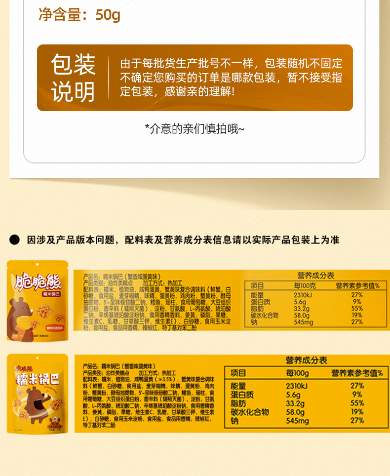 【口味】蟹香咸蛋黄味、珍品原味、海鲜味、川香椒麻味